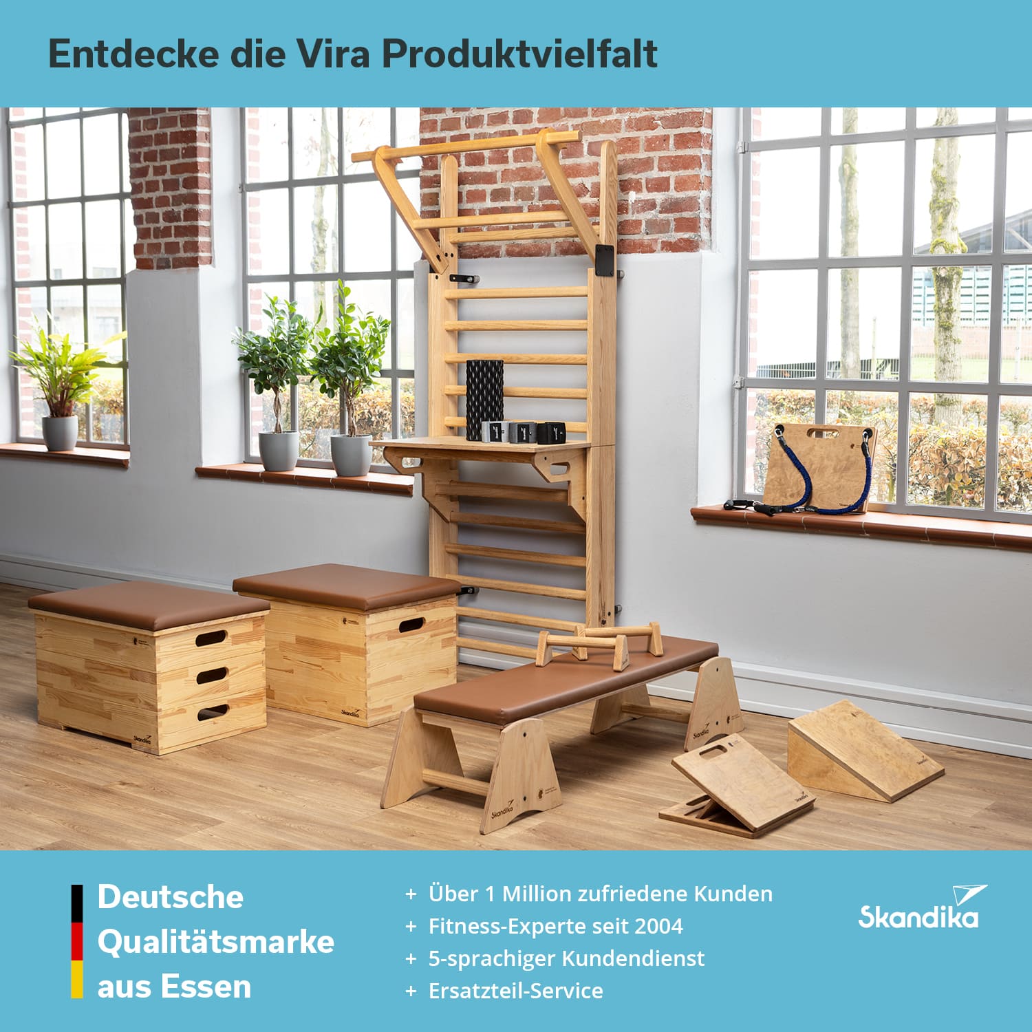 Für noch mehr Trainingsmöglichkeiten lässt sich der Wadendehner mit weiteren Produkten aus der Skandika Vira-Reihe, wie der Vira Sprossenwand oder dem Vira Sprungkasten, ergänzen. So wird ein flexibles und abwechslungsreiches Training ermöglicht.