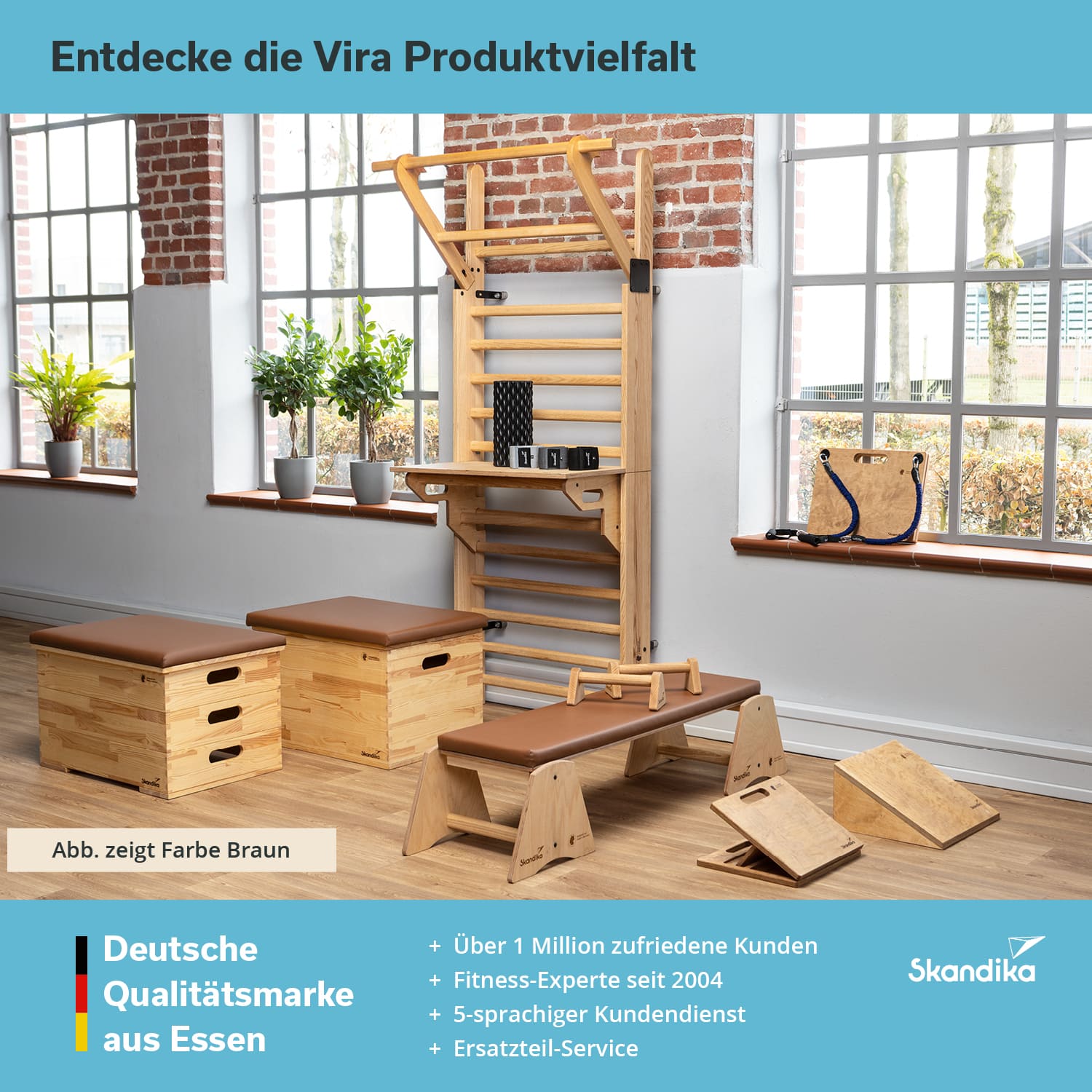 Der Vira Sprungkasten wird mit höchster Sorgfalt und aus stabilem Kiefernholz gefertigt und bietet eine solide, belastbare Grundlage, die selbst bei intensiven Übungen Sicherheit gewährleistet und durch Stabilität, Komfort und Langlebigkeit überzeugt.
