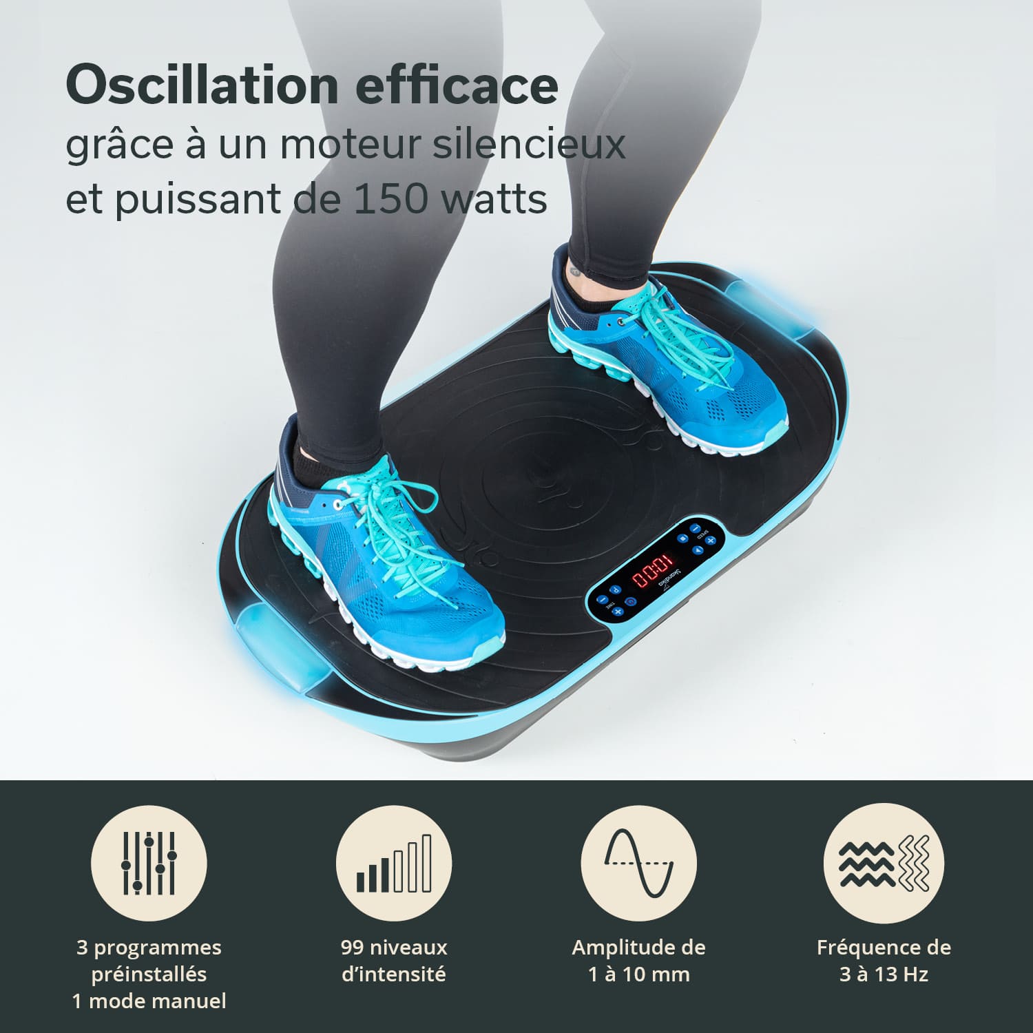The necessary power is provided by a powerful 150 watt motor, which offers a total of 99 intensity levels with an oscillation frequency between 3 and 13 Hz. This also activates the deep muscles during training.
