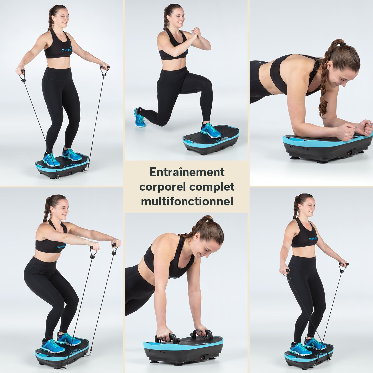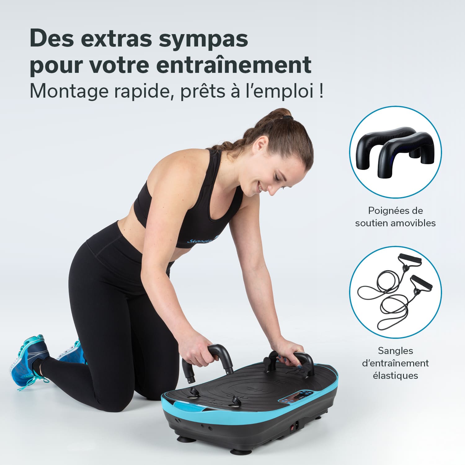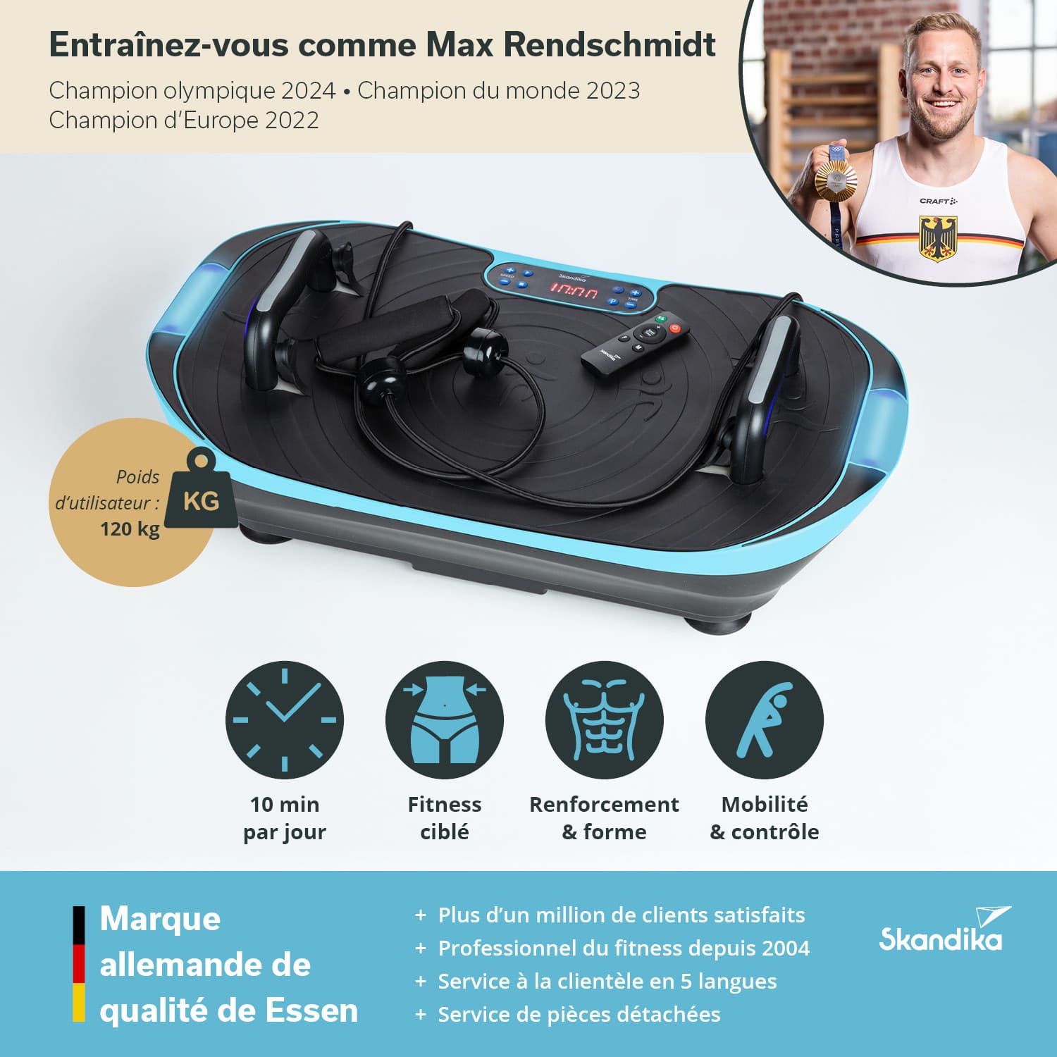 The Skandika V2 vibration plate combines innovative technology with a sophisticated design, enabling an efficient full-body workout in the comfort of your own home. It is a compact fitness device with the advantages of additional training handles and elastic resistance bands, which support effective and versatile training for the whole body anytime and anywhere.