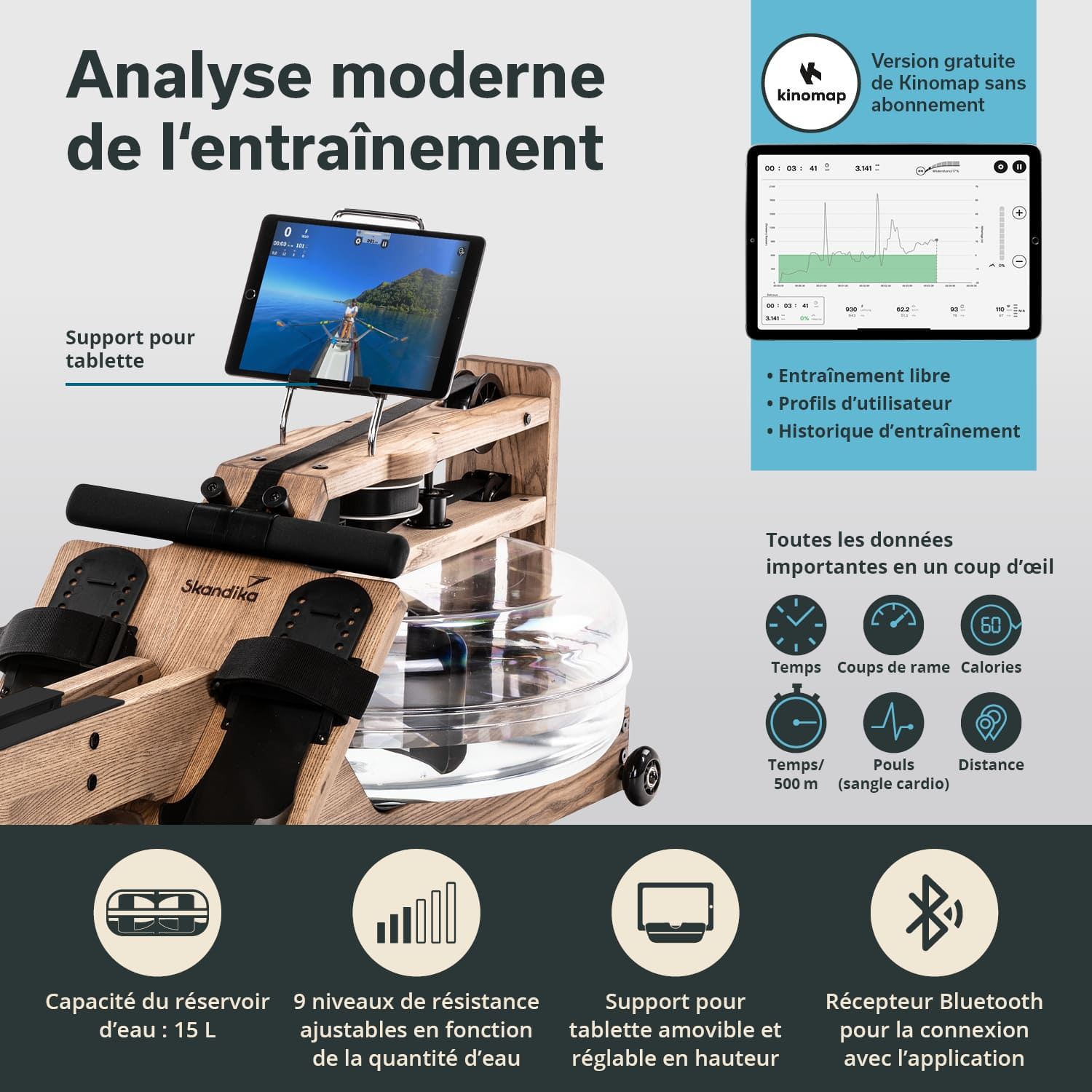 The free Skandika Training Data app for iOS and Android transforms your smartphone or tablet into an exclusive training computer. The intuitive app shows all relevant data such as time, time/500 m, distance, rowing strokes, rowing strokes/min and speed at a glance.