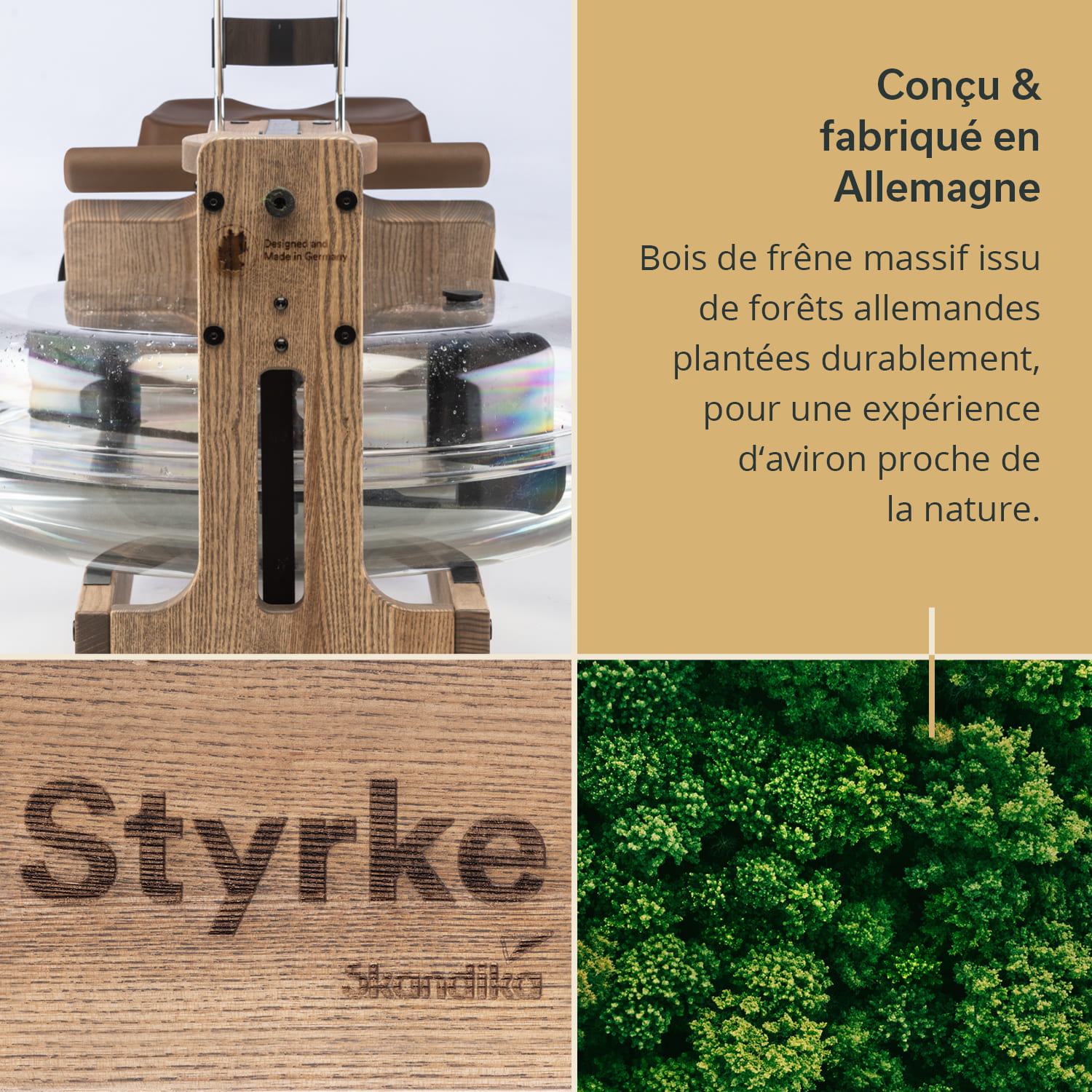 The latest generation of our premium Styrke rowing machine made of solid ash now not only combines stylish design with professional standards of ergonomics, aesthetics and performance, but also raises quality and standards to an even higher level with its "Made in Germany" title. In addition, sustainable, German forests and low-waste, local processing bring awareness of our environment to the fore. The result: a maximally authentic rowing experience in symbiosis with German craftsmanship and a love for our planet.