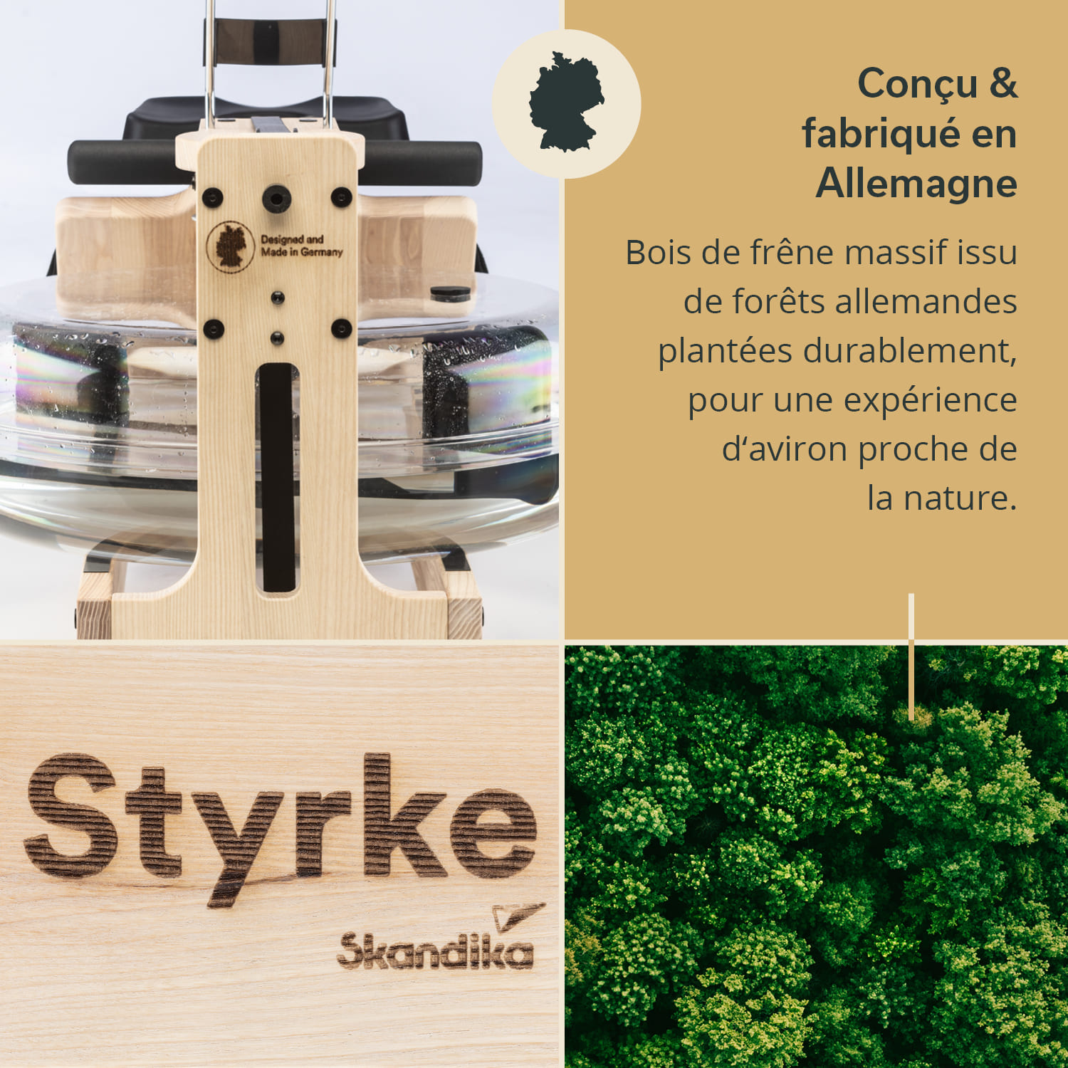 The latest generation of our premium Styrke rowing machine made of solid ash now not only combines stylish design with professional standards of ergonomics, aesthetics and performance, but also raises quality and standards to an even higher level with its "Made in Germany" title. In addition, sustainable, German forests and low-waste, local processing bring awareness of our environment to the fore. The result: a maximally authentic rowing experience in symbiosis with German craftsmanship and a love for our planet.