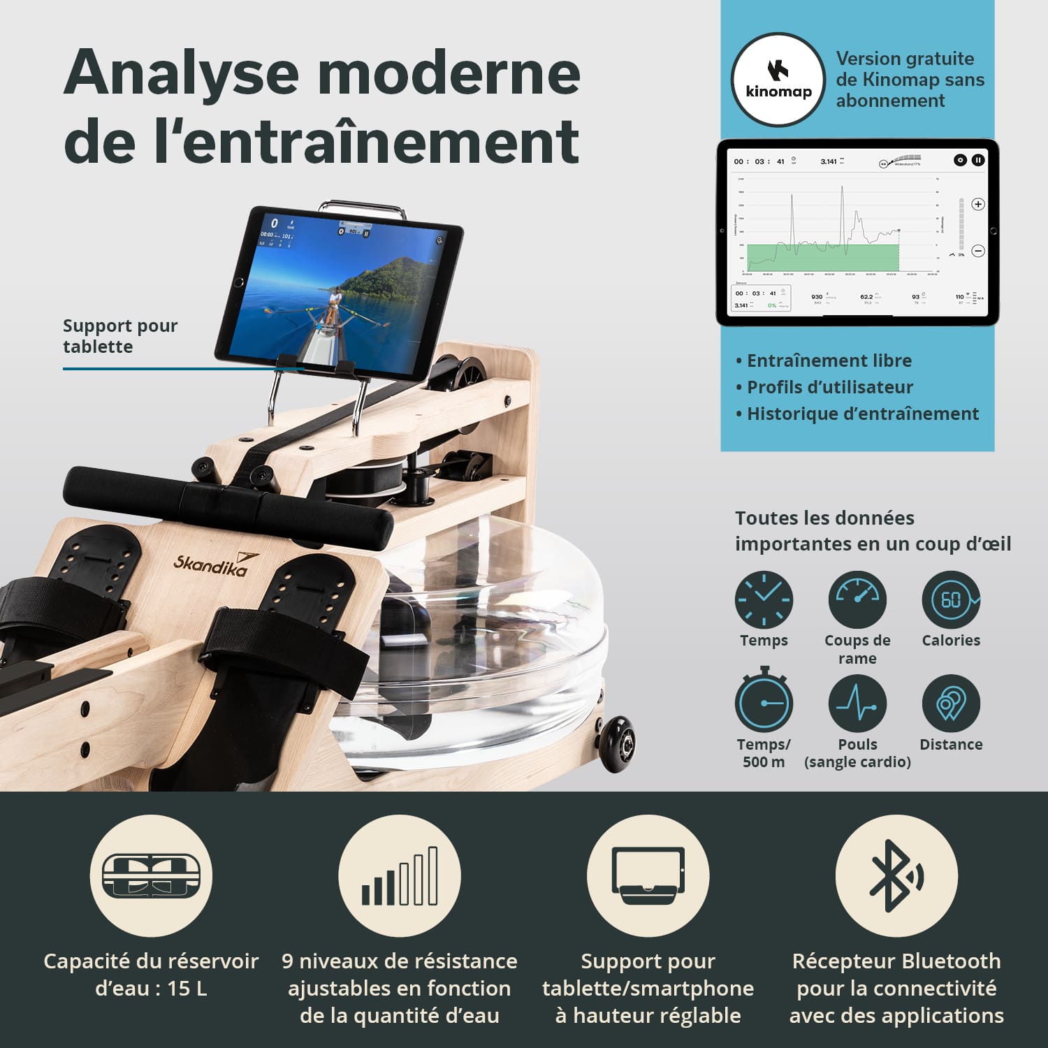 The free Skandika Training Data app for iOS and Android transforms your smartphone or tablet into an exclusive training computer. The intuitive app shows all relevant data such as time, time/500 m, distance, rowing strokes, rowing strokes/min and speed at a glance.