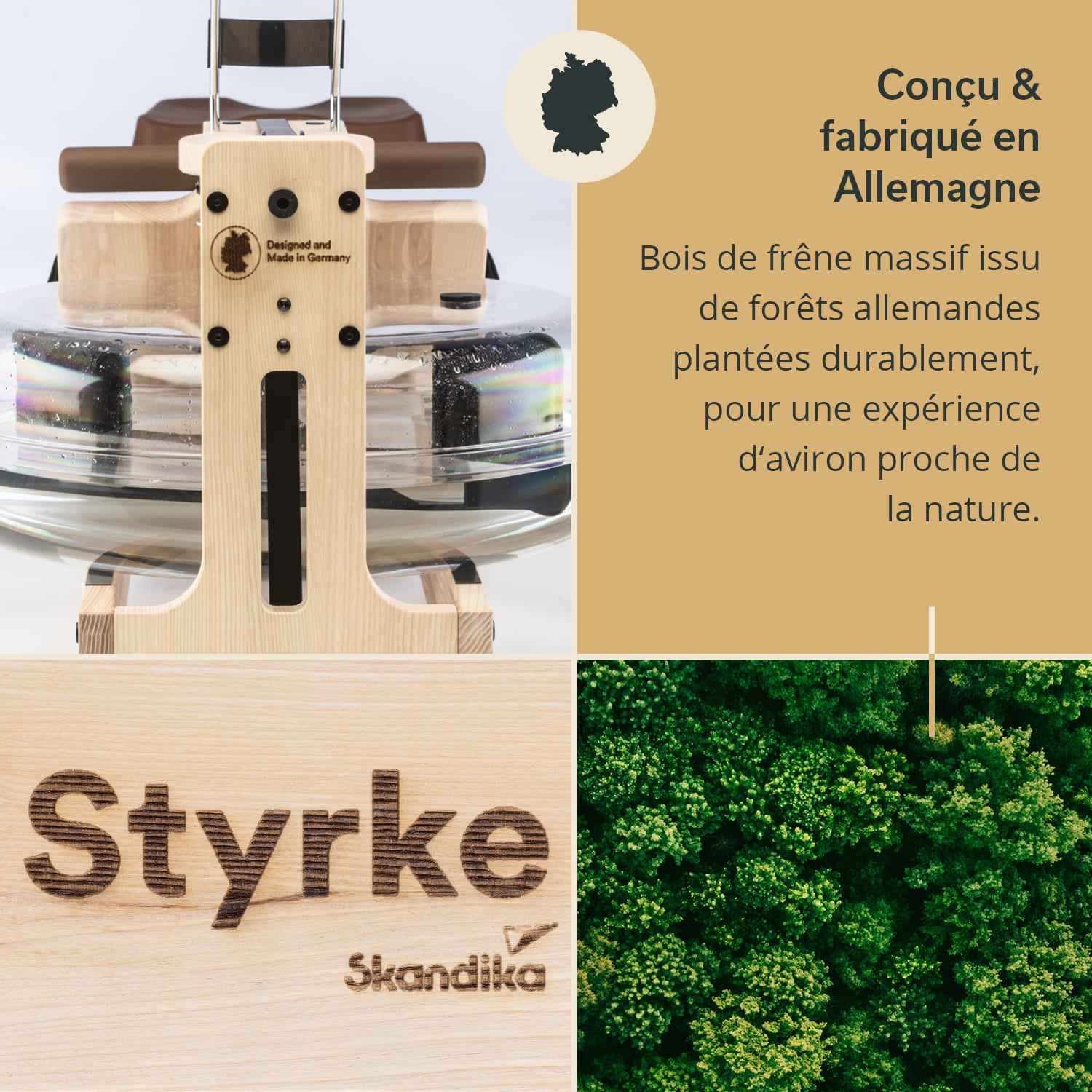 The latest generation of our premium Styrke rowing machine made of solid ash now not only combines stylish design with professional standards of ergonomics, aesthetics and performance, but also raises quality and standards to an even higher level with its "Made in Germany" title. In addition, sustainable, German forests and low-waste, local processing bring awareness of our environment to the fore. The result: a maximally authentic rowing experience in symbiosis with German craftsmanship and a love for our planet.