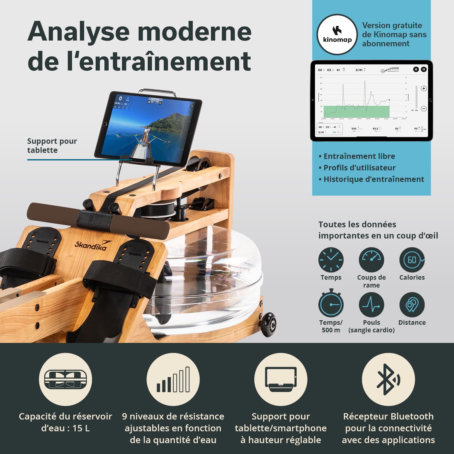 The free Skandika Training Data app for iOS and Android transforms your smartphone or tablet into an exclusive training computer. The intuitive app shows all relevant data such as time, time/500 m, distance, rowing strokes, rowing strokes/min and speed at a glance.