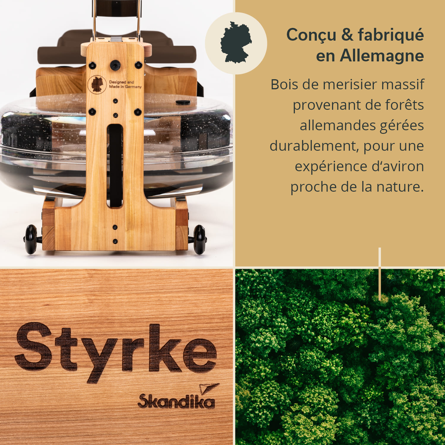 The latest generation of our premium Styrke rowing machine made of solid ash now not only combines stylish design with professional standards of ergonomics, aesthetics and performance, but also raises quality and standards to an even higher level with its "Made in Germany" title. In addition, sustainable, German forests and low-waste, local processing bring awareness of our environment to the fore. The result: a maximally authentic rowing experience in symbiosis with German craftsmanship and a love for our planet.