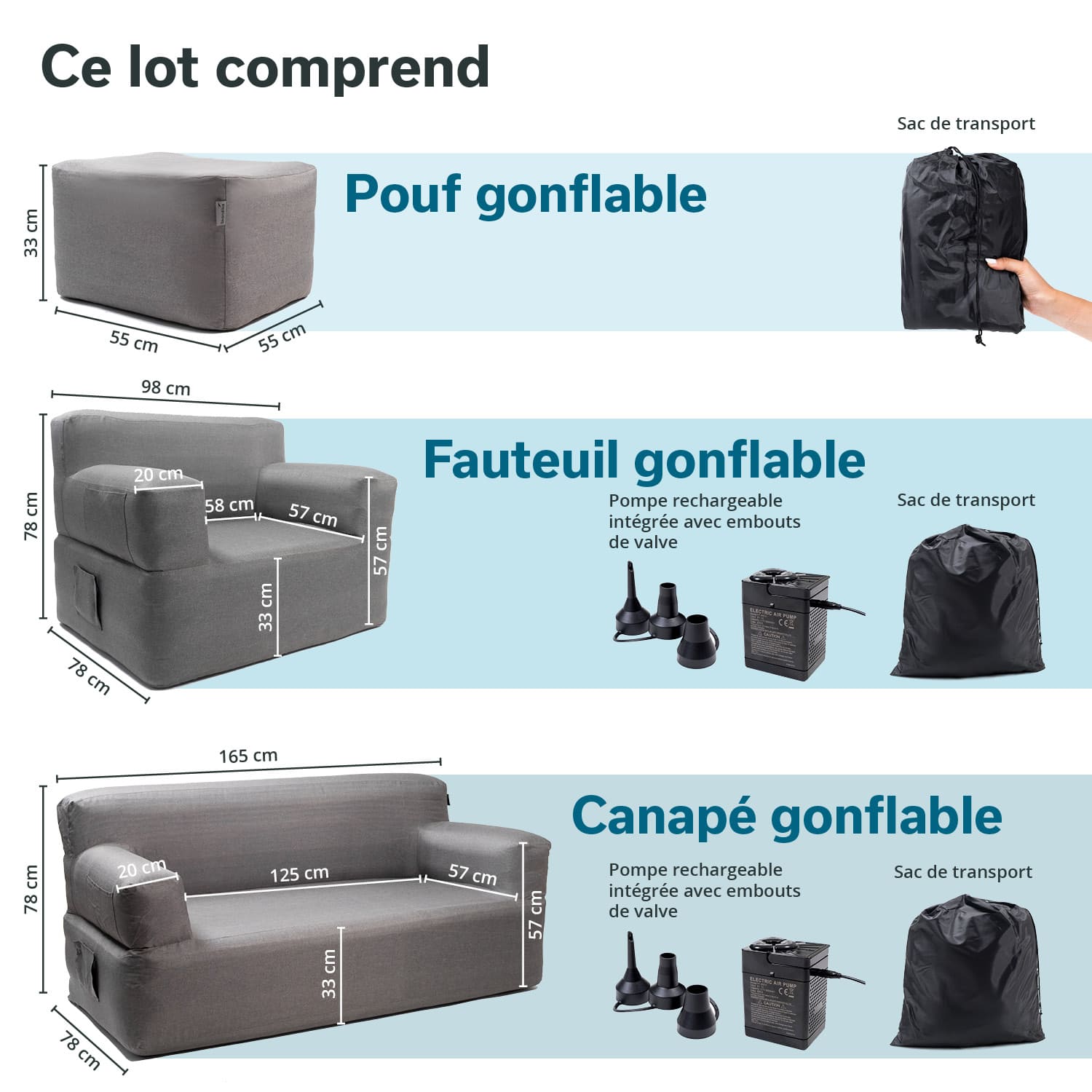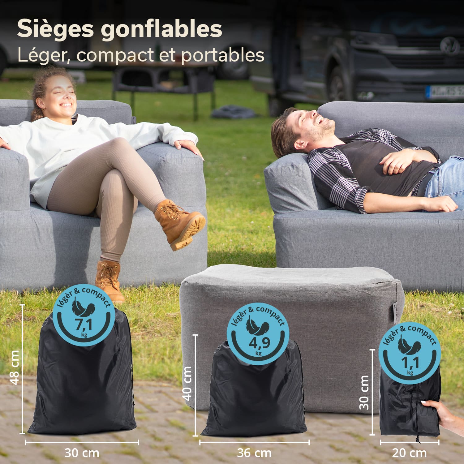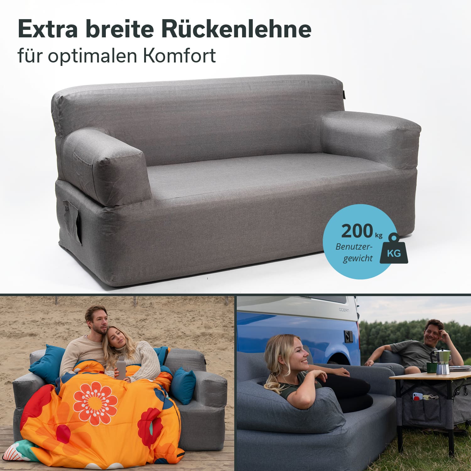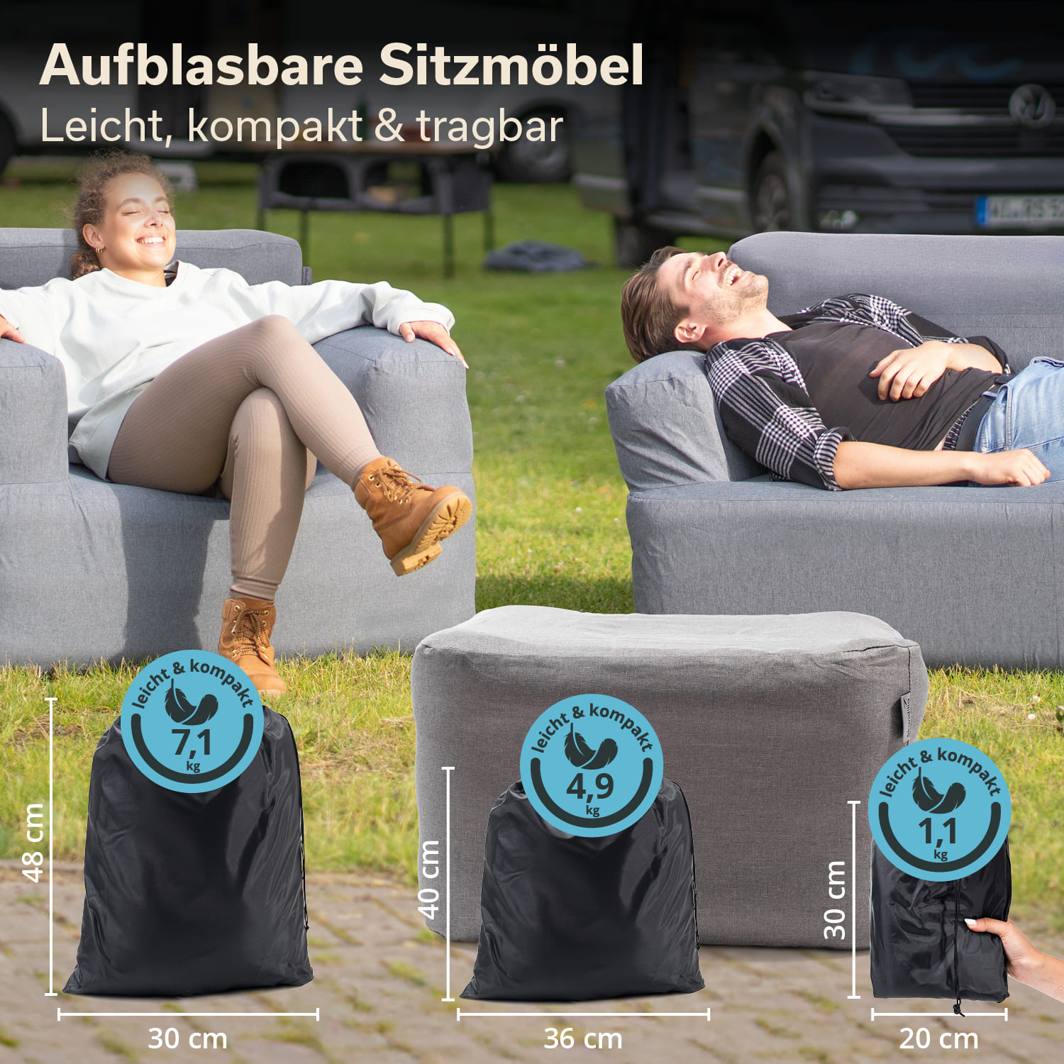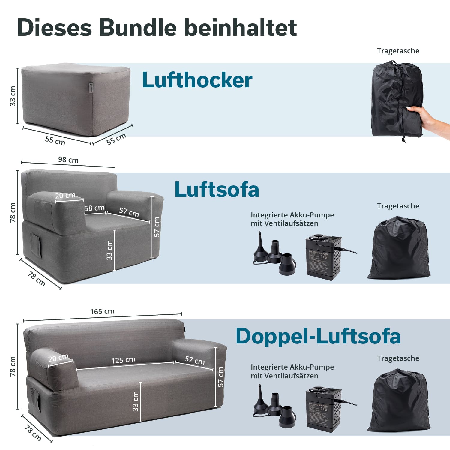 - Produktpaket bestehend aus 1× Luftsofa, 1× Doppel-Luftsofa, 1× Lufthocker