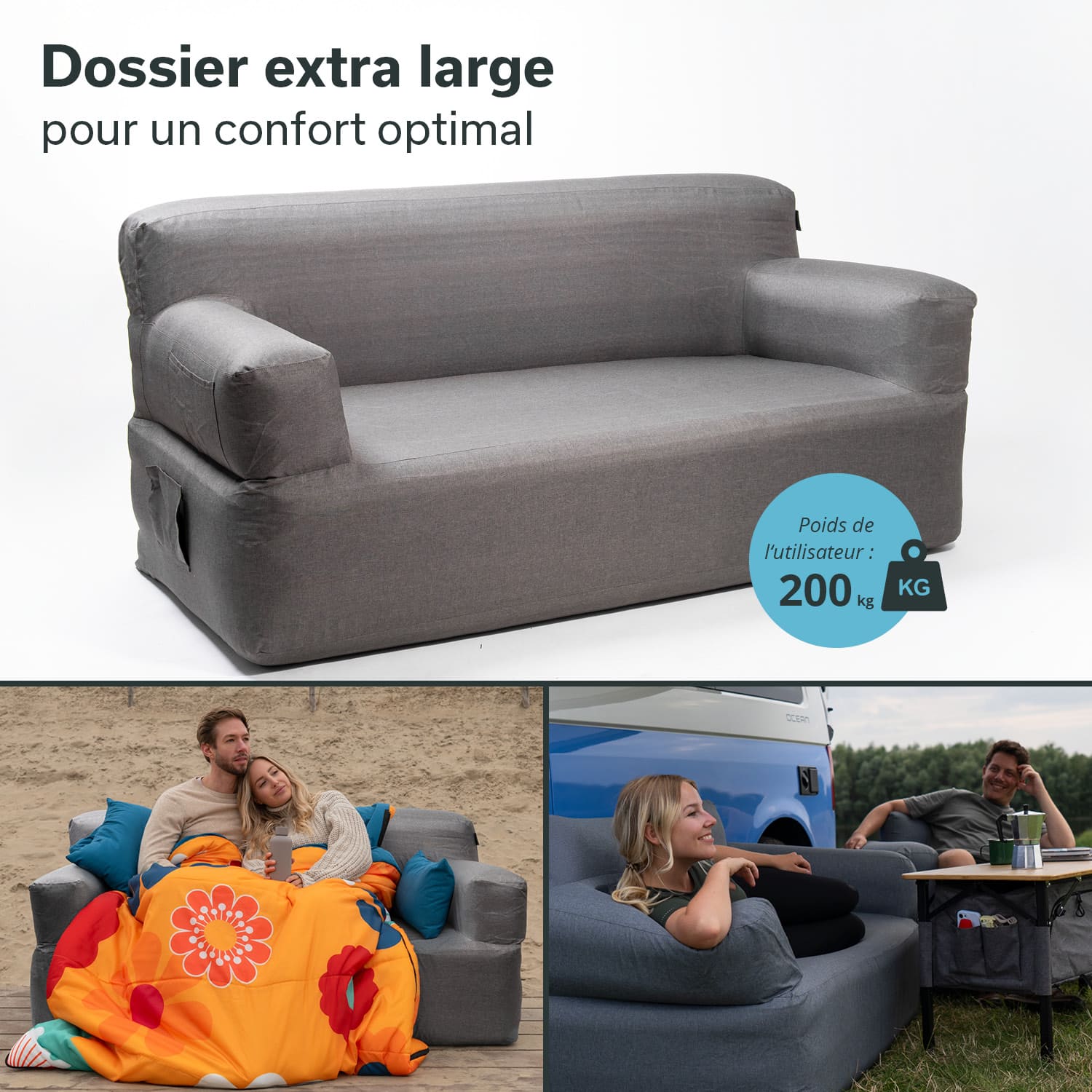 Die zwei Pumpen können bei Bedarf aus den Sofas herausgenommen und dank der drei mitgelieferten Ventilaufsätze auch für andere aufblasbare Produkte verwendet werden. Für Isomatte, Schlauchboot oder Planschbecken wird keine zusätzliche Pumpe benötigt.
