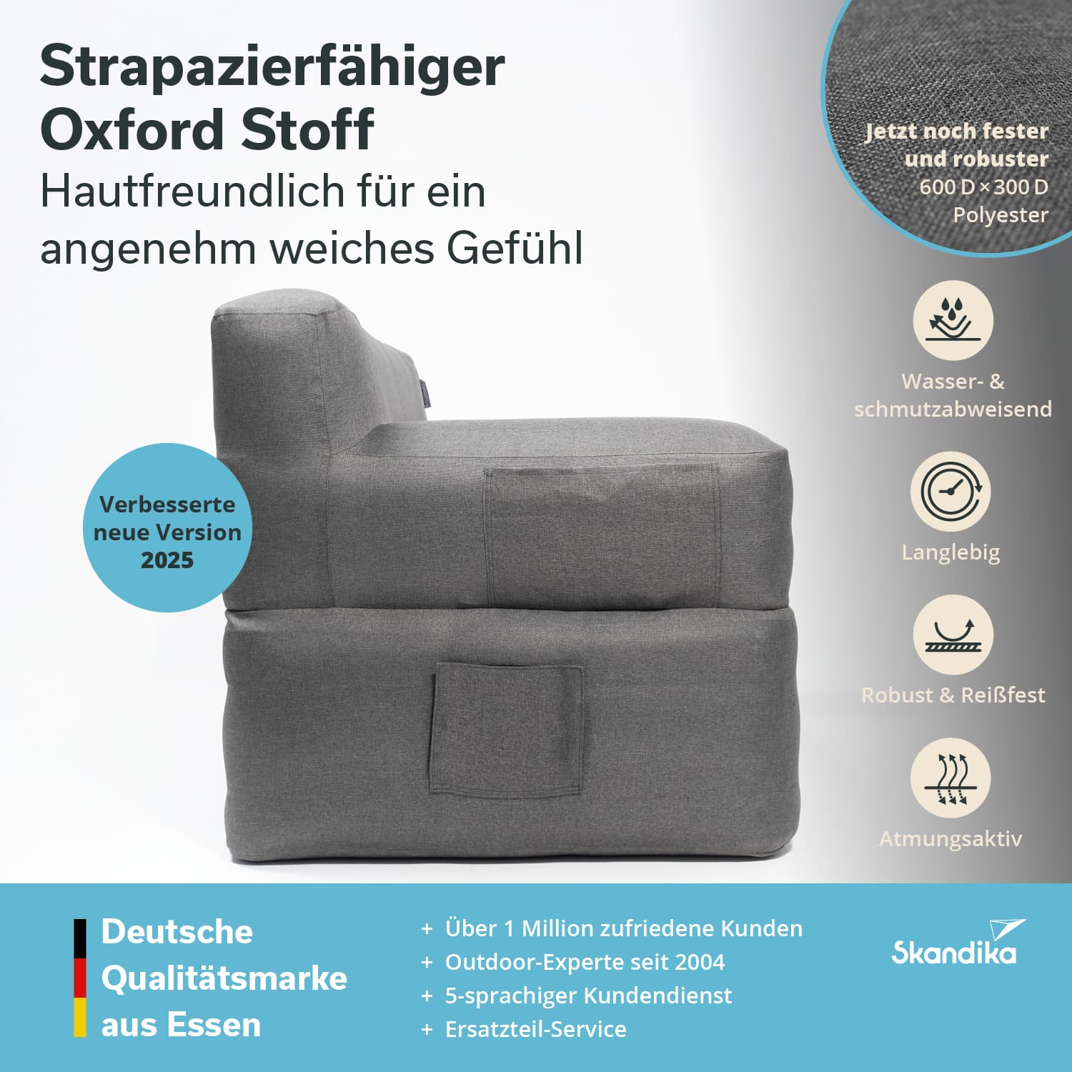 - Maße Luftsofa 98 × 78 × 78 cm / Gewicht 4,9 kg / mit herausnehmbarer Pumpe