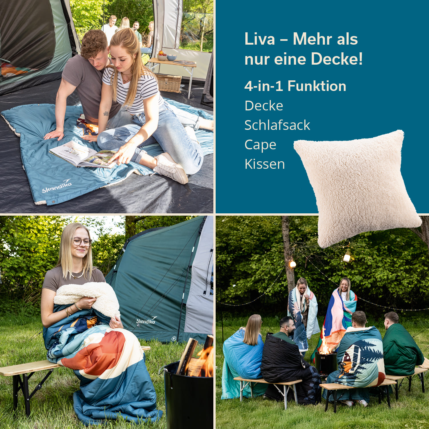 - 4-in-1 Outdoordecke – nutzbar als Decke, Cape, Schlafsack oder Kissen
