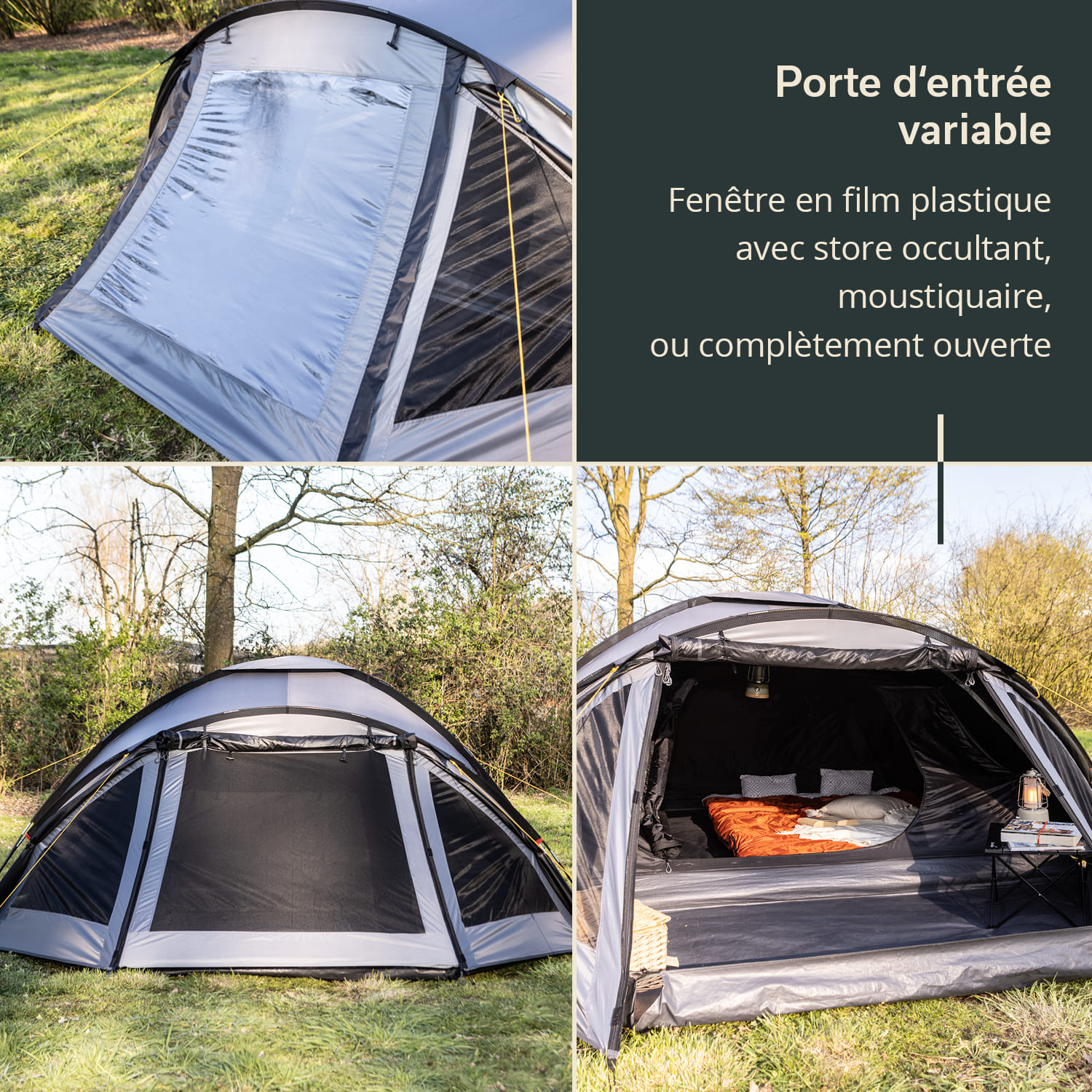 - Material (cabin): 180T polyester, breathable (black)