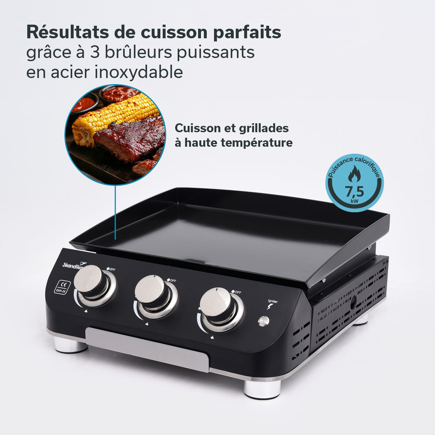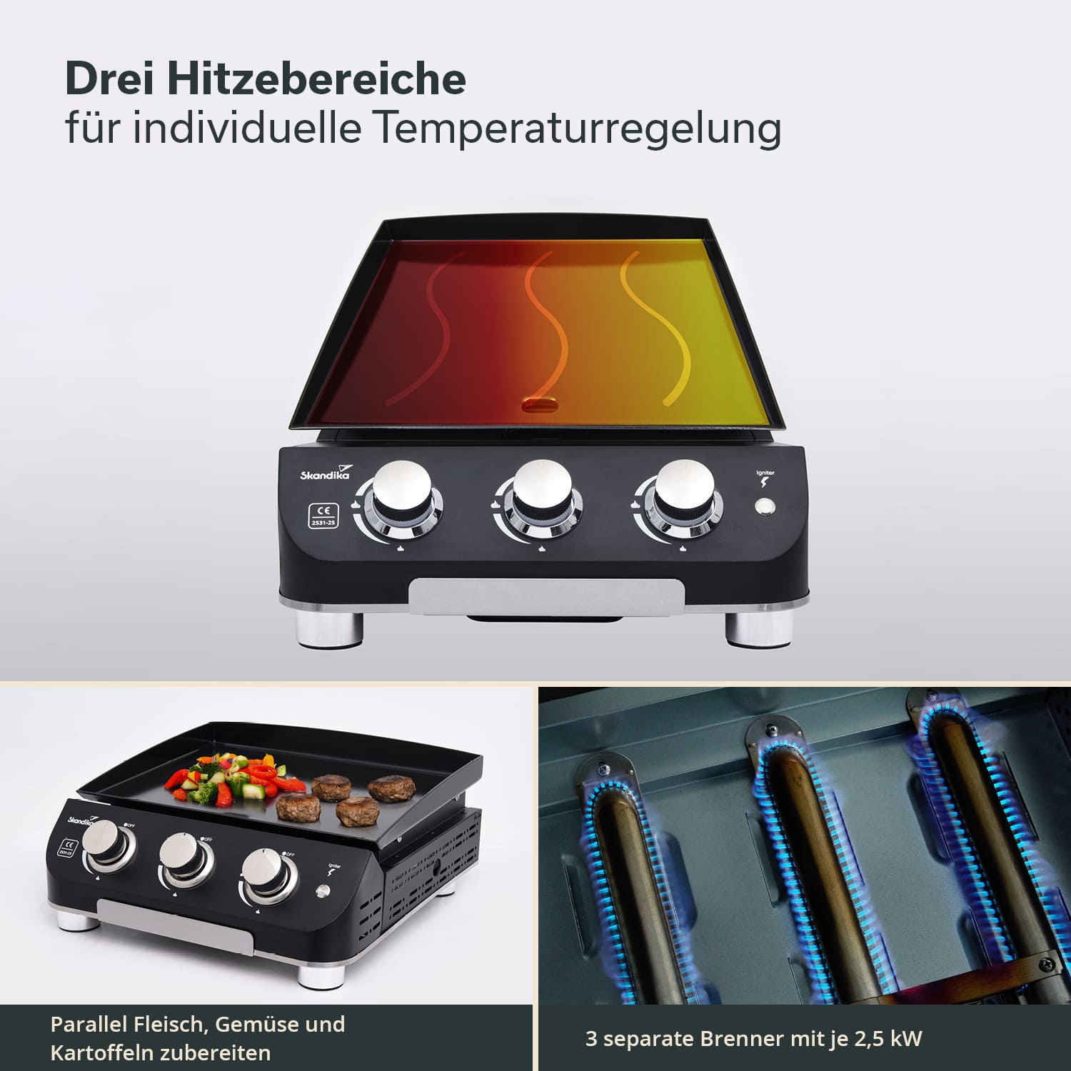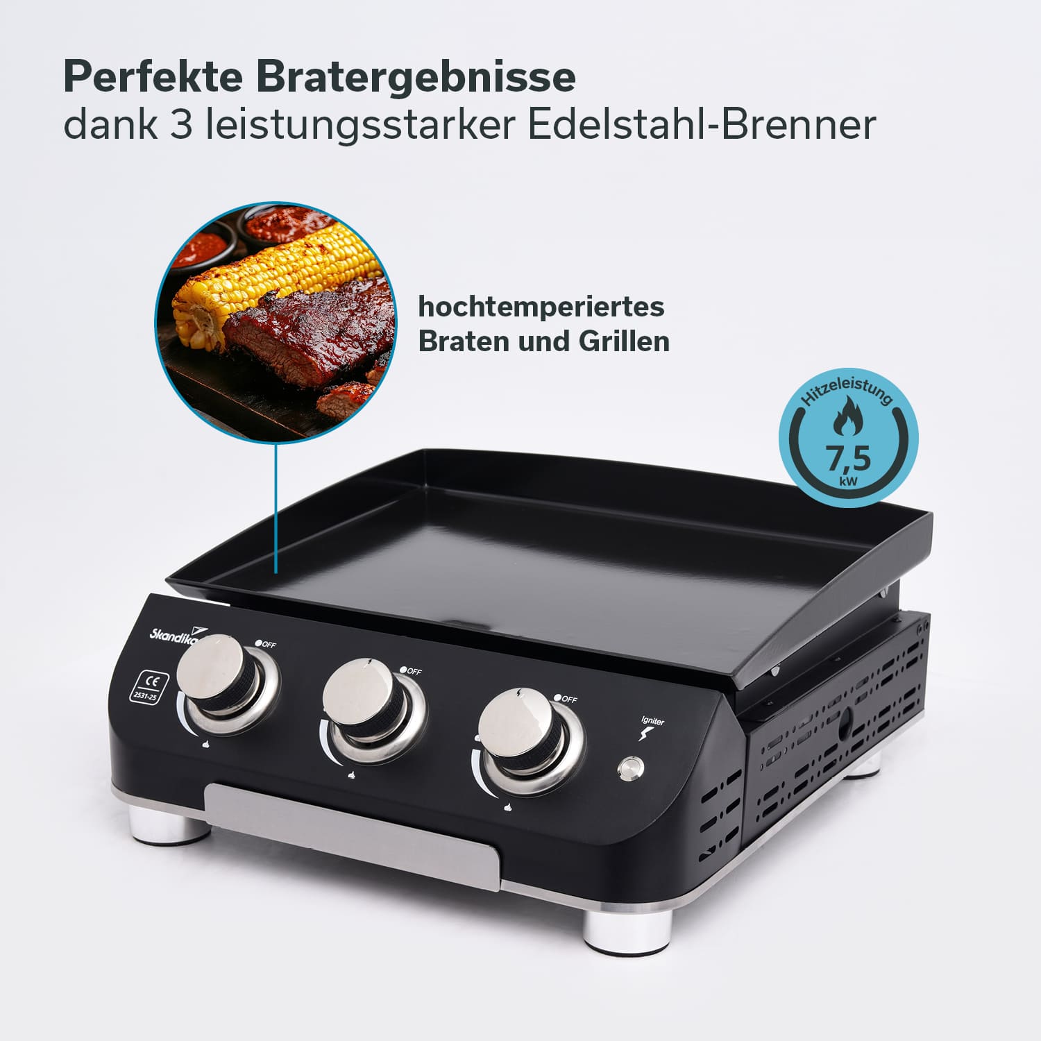 - Hervorragende Gesamthitzeleistung von 7,5 kW (3 Brenner mit je 2,5 kW Leistung)