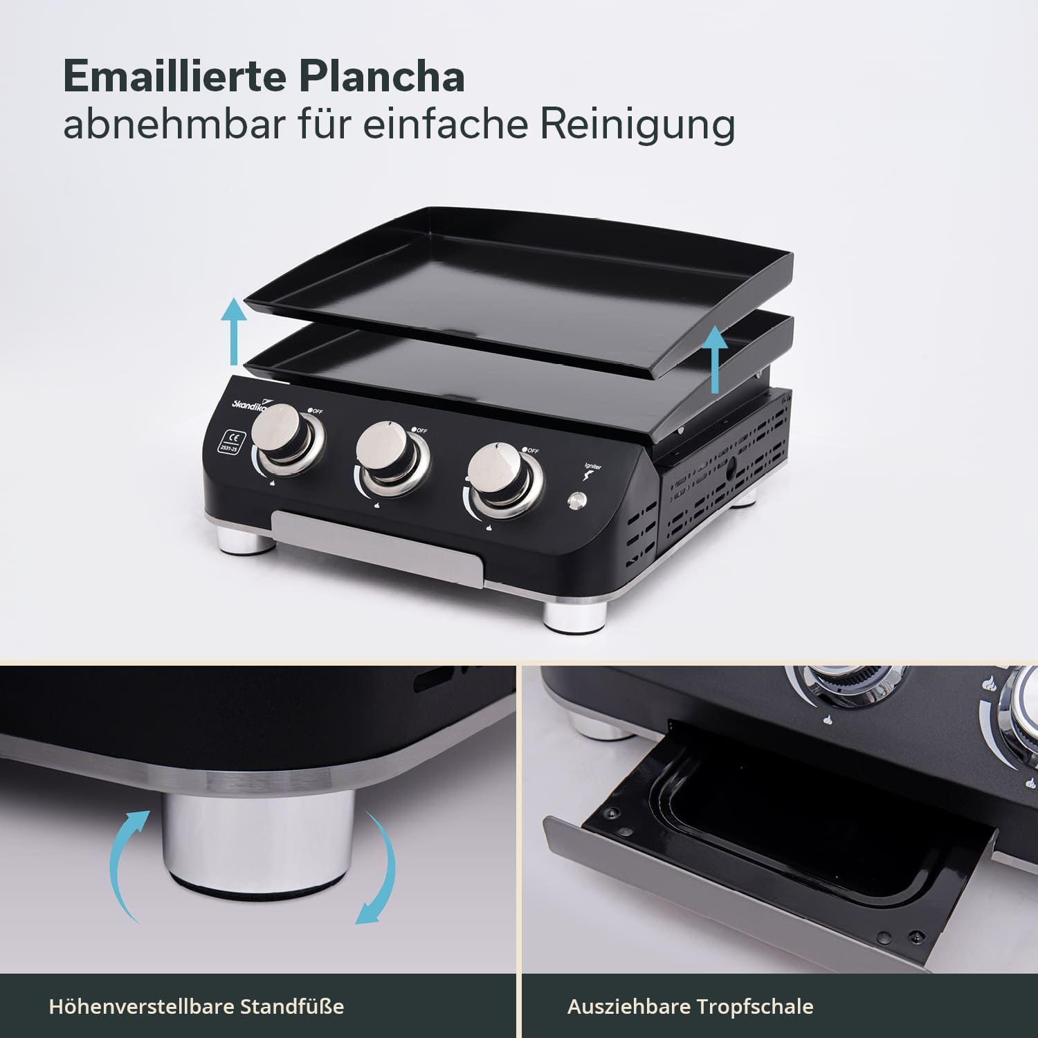 - Plancha-Platte aus emailliertem Stahl für gute Antihafteigenschaften und einfache Reinigung