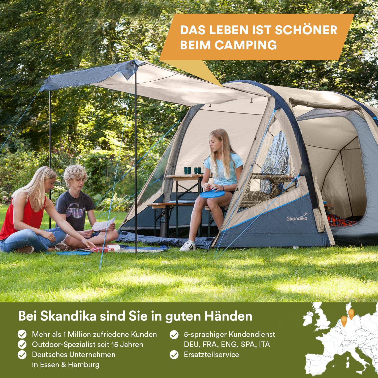 Easy to use, stable and weatherproof, equipped with clever details and with a stylish design to boot - the Skandika Folldal is a real eye-catcher on the campsite, in the garden at home or on the festival grounds.