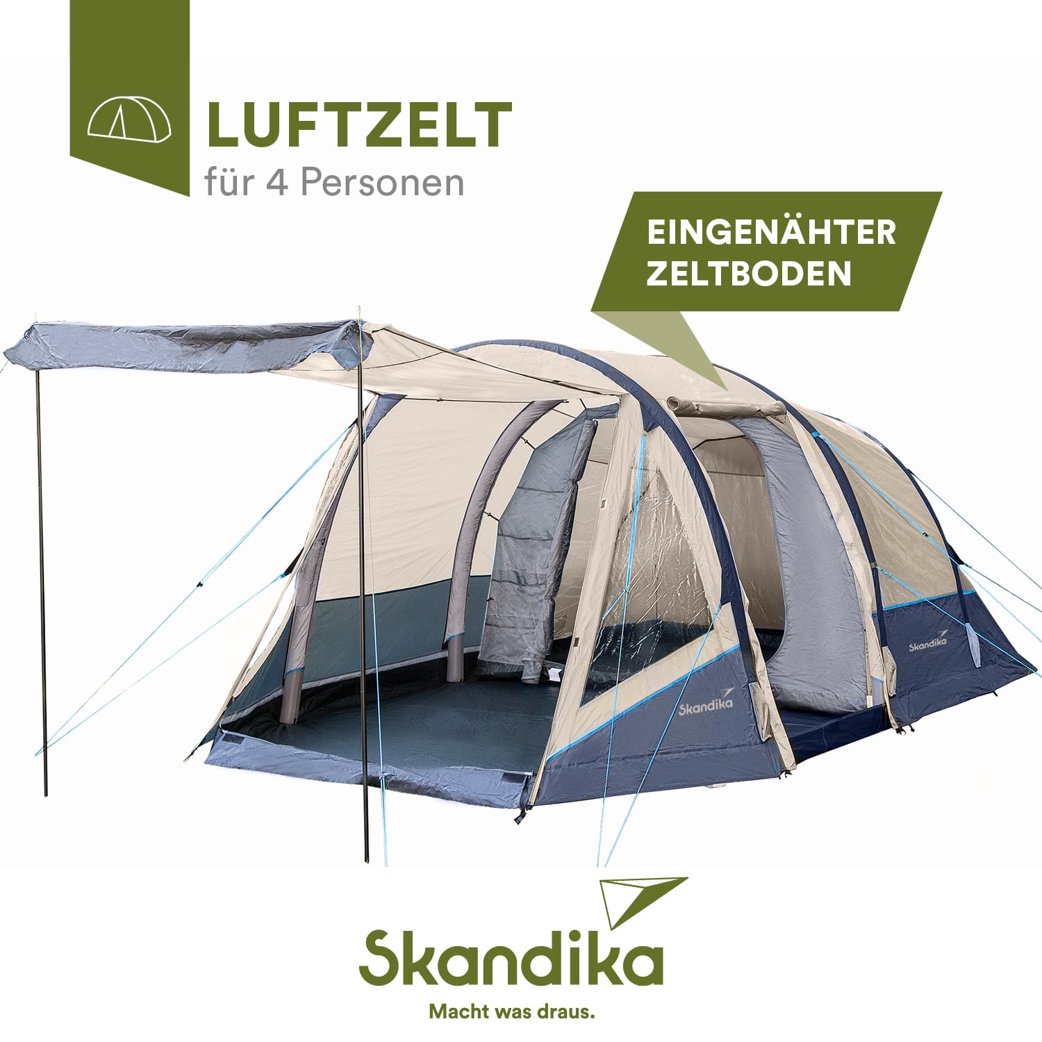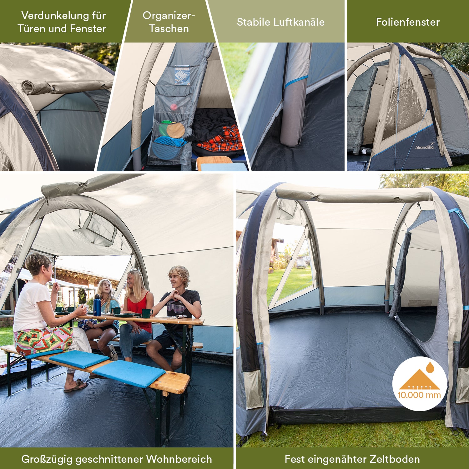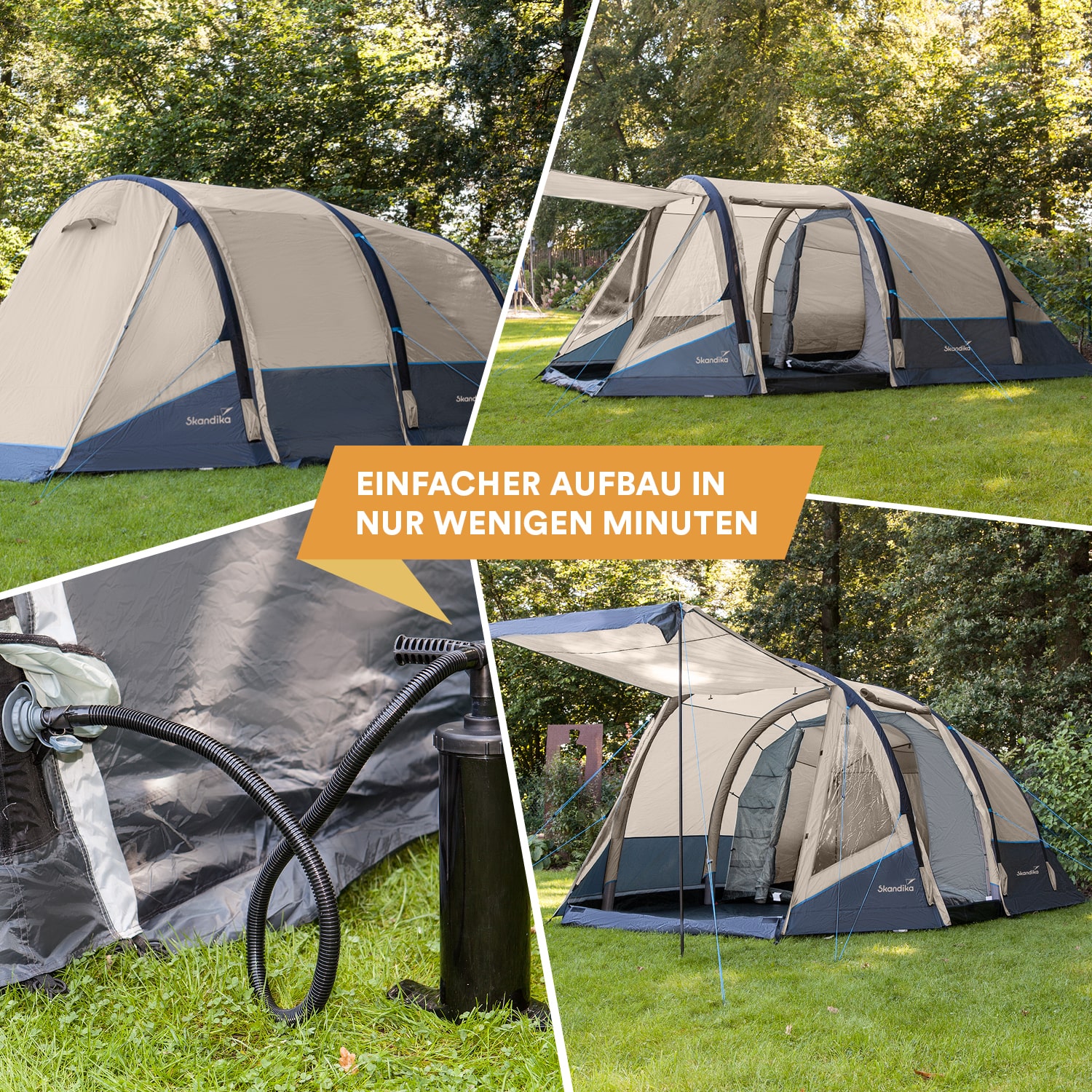 The innovative Skandika AIR-RISE technology offers top tents without poles! The highlight is the air channels, which are super easy and extremely quick to inflate - the air pump is supplied with the tent. Even novice campers or individuals can set up the tent in no time at all.