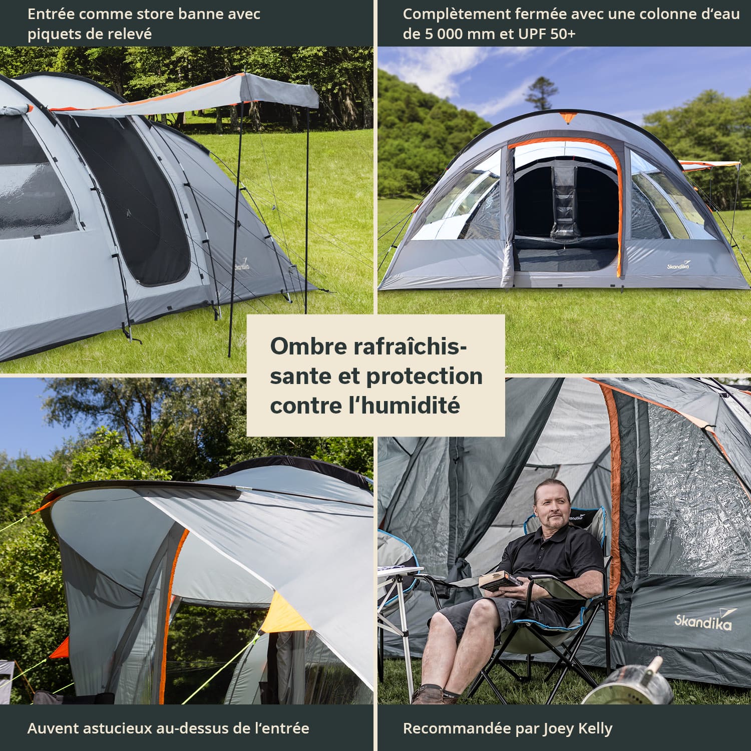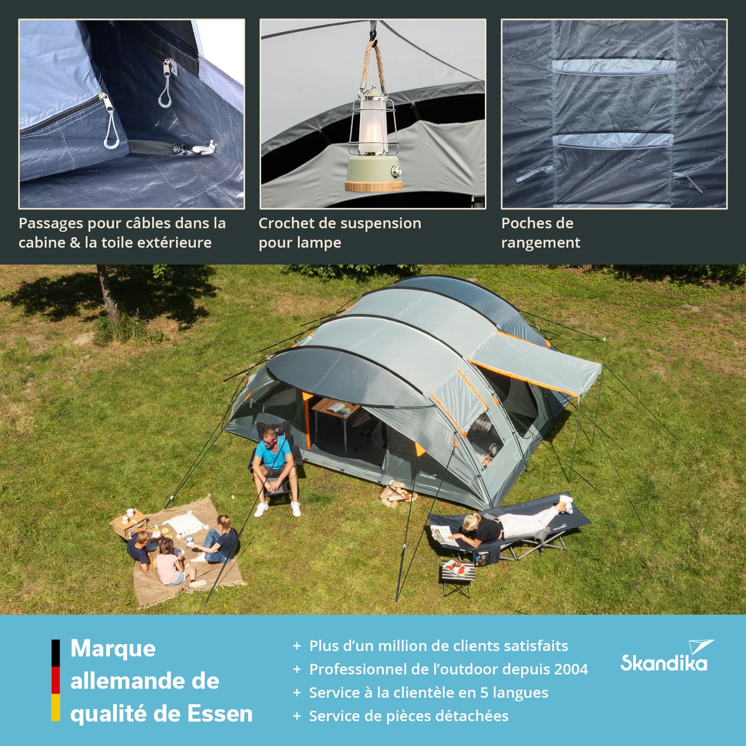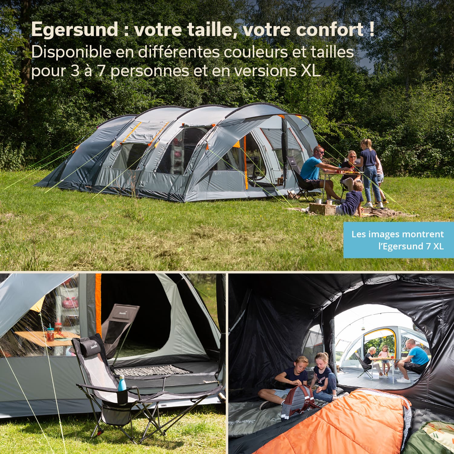 Unsere beliebten Egersund Zelte mit fest eingenähtem Zeltboden haben wir nun um eine etwas größere Version mit der Skandika Sleeper Technology, einer speziellen Beschichtung des Außenzeltes, und abgedunkelten Innenkabinen erweitert. Das standsichere, wetterfeste Zelt ist eine exzellente Wahl für Familien, die mit Kindern zelten oder wenn Freunde zusammen unterwegs sind, die Komfort und ruhige Nächte schätzen.